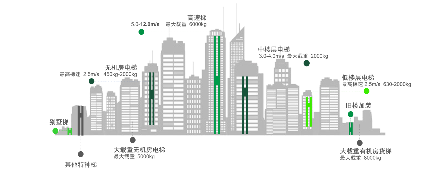 Maksimum 6000 kg yük kapasitesi (2:1 oran) ve maksimum 12 m/s (1:1 oran) hıza sahip, uygulama senaryolarına uygun geniş bir yelpazede cer makineleri ve bunlara uygun ana çerçeveler sunuyoruz. Müşteriler, asansör parametrelerine göre uygun modelleri doğrudan seçebilir, bu da tasarım döngüsünü önemli ölçüde kısaltır.